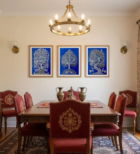 A fusion of tradition and modernism. Cheriyal storytelling meets Husain’s expressive spirit.