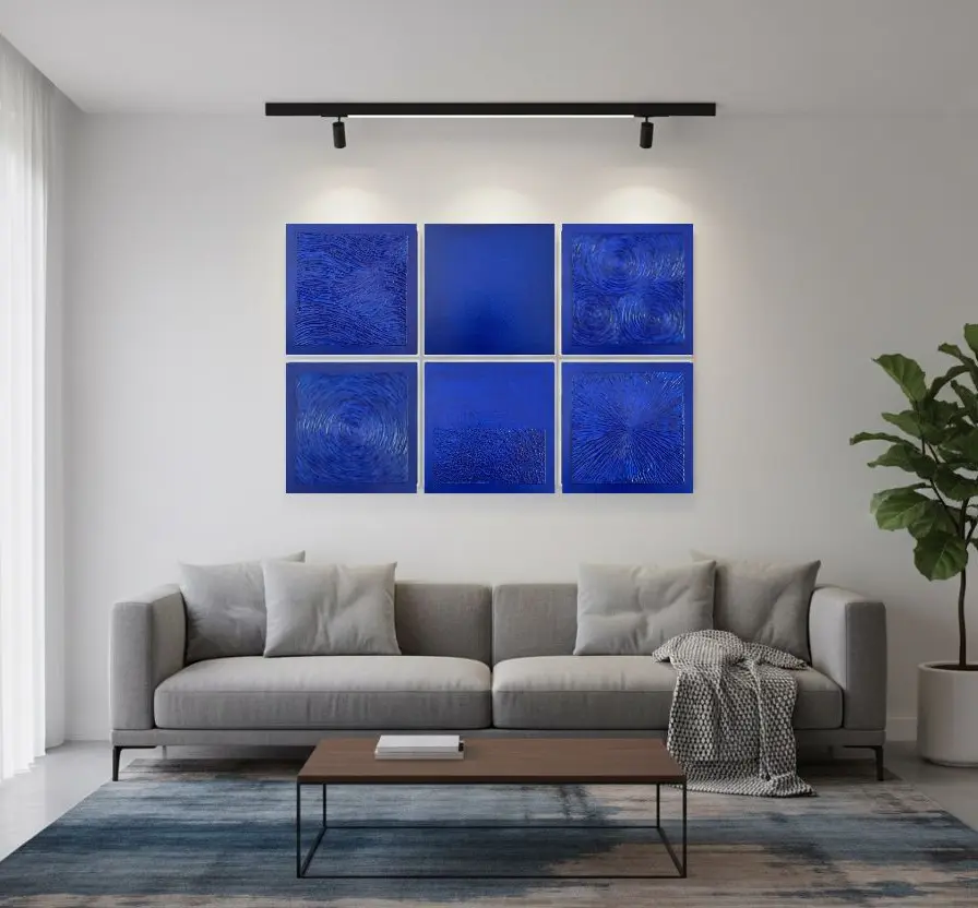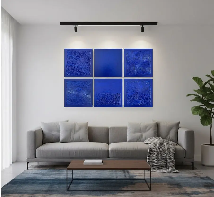 Through textured canvases and contemporary reinterpretations of Indian art traditions, I invite you to see what blue reveals through silence, depth, and light.